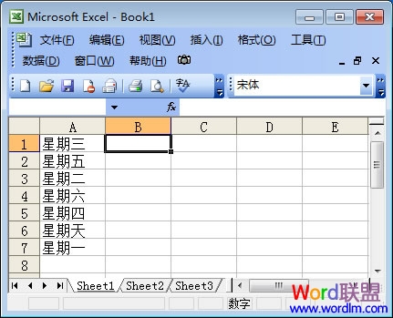 这里我以为星期来排序作演示,如下图,从“星期一”到“星期五”,只是顺序打乱了而已,下面我们就来将这顺序排列好;